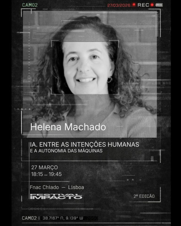 On 27 March, Helena Machado will participate in the session “AI: Between Human Intentions and Machine Autonomy”, part of the Festival Impacto, taking place at Palco Impacto, FNAC Chiado (18:15h).